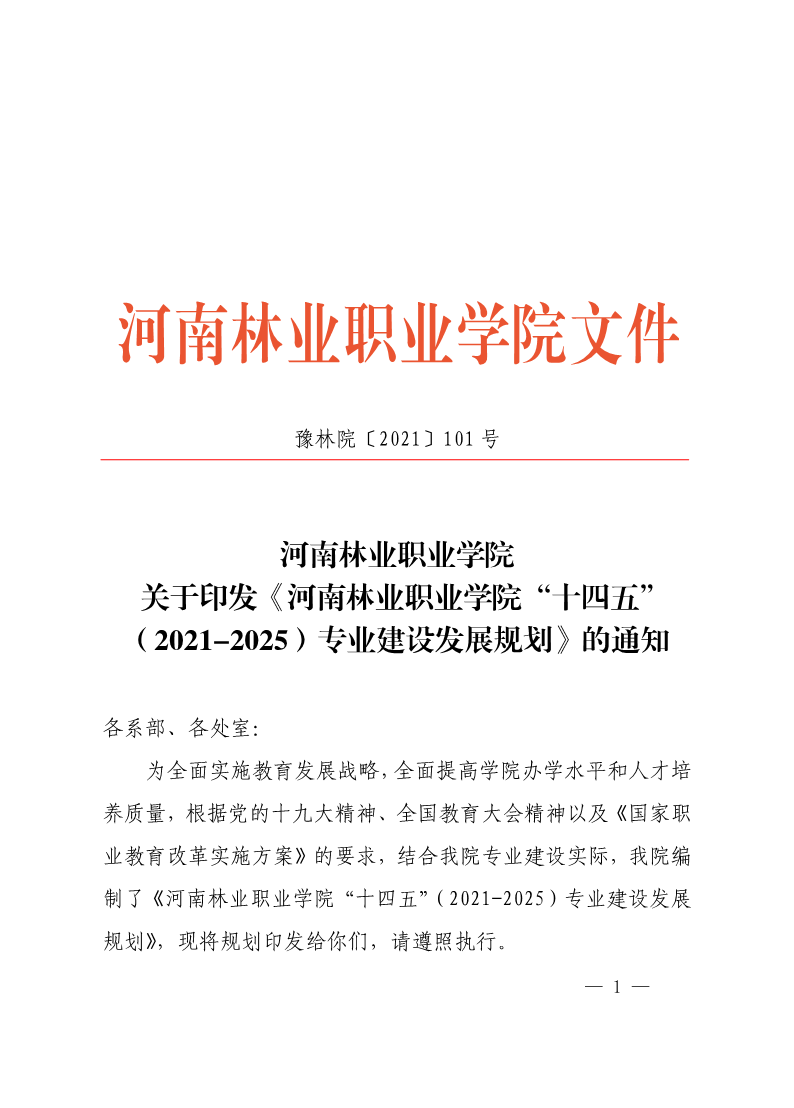 关于印发《河南林业职业学院“十四五”(2021-2025)专业建设发展规划》的通知