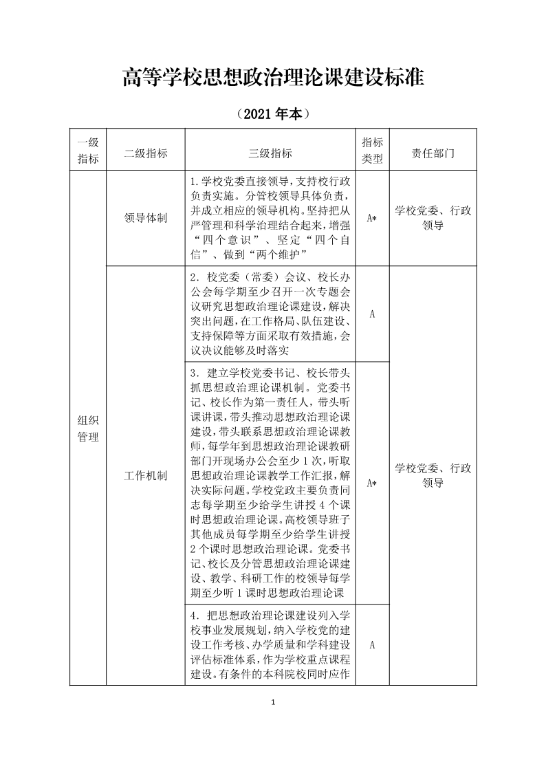 高等学校思想政治理论课建设标准(2021年本)