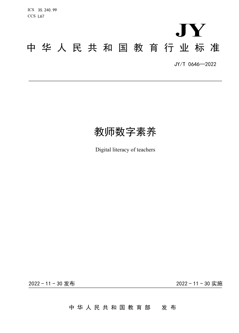 中 华 人 民 共 和 国 教 育 行 业 标 准-教师数字素养