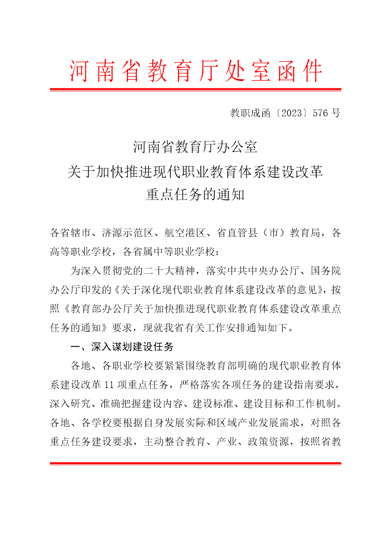 关于加快推进现代职业教育体系建设改革重点任务的通知