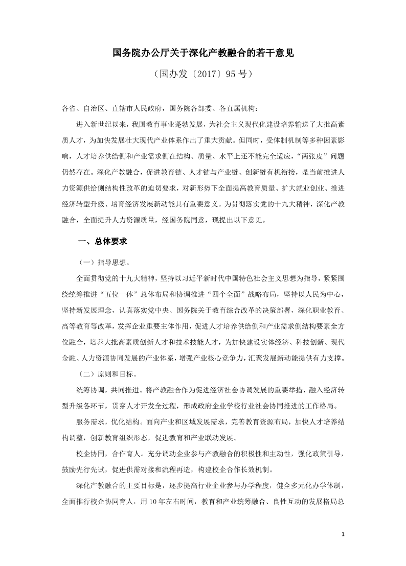 国务院办公厅关于深化产教融合的若干意见