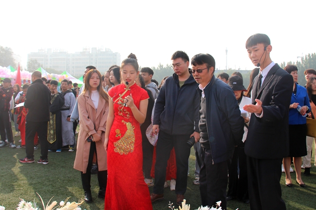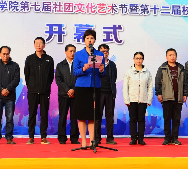 11月2日上午8:30,我院第七届社团文化艺术节在运动场盛大开幕。共青团洛阳市委副书记张田、学校部部长郭兵、学院党委书记吴国新、院长宋宏伟、副院长刘宗利、原学院党委副书记房国华出席开幕式,党办、教务处、学生处、团委、武装部、后勤服务中心、招生就业处、图书馆、老干部处、关工委以及各社团管理单位主要负责同志、各社团指导老师、全体学生社员参加了开幕式。