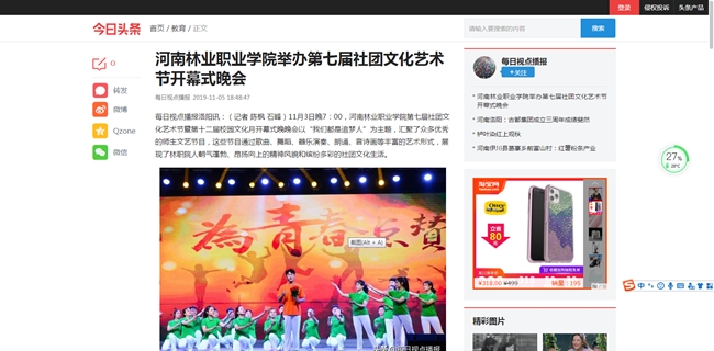 多家主流媒体报道我院第七届社团文化艺术节开幕式晚会盛况