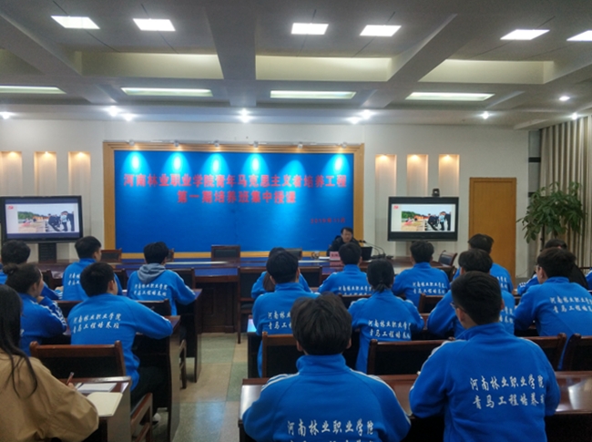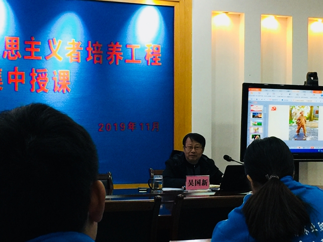 11月13日晚6:30,学院党委书记吴国新以《传承红色基因,弘扬大别山精神》为主题,为第一期“青马工程”培养班学员上专题党课。全体青马班学员参加党课学习。