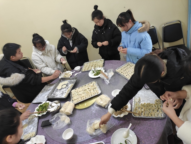12月21日中午,信艺系、经贸系团总支的师生们,将亲手包好的饺子送给学院后勤服务保障工作第一线的宿管阿姨、保洁、保安、图书管理员以及快递揽收处的工作人员。