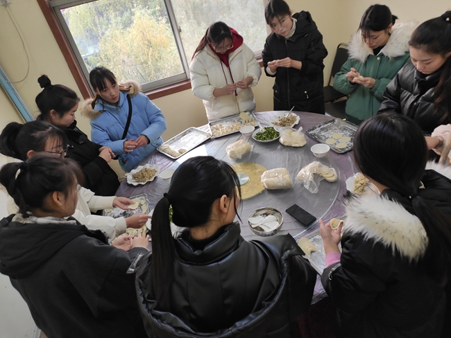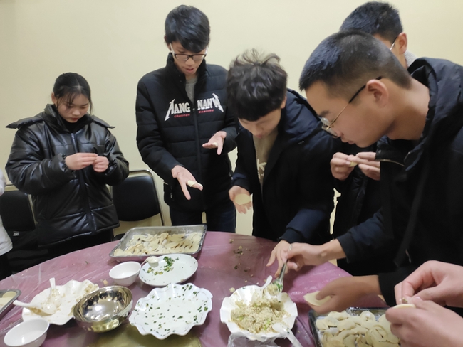 冬至吃饺子,是我国民间的传统食俗。饺子作为阖家团圆欢聚的象征,是冬至不可缺少的节日食品。12月17日下午,生态系团总支开展包饺子迎冬至传统习俗实践活动,同学们挽起袖子,一起忙活,和面的和面、调馅的调馅,擀皮的擀皮,当热气腾腾的饺子送到老人们手中时,老人们心里乐开了花。在第一锅饺子出锅后,同学们特意将饺子打包送到宿管阿姨们的手中,与他们一起分享节日的快乐。