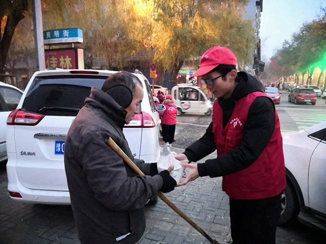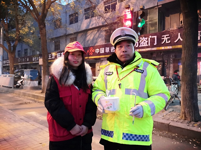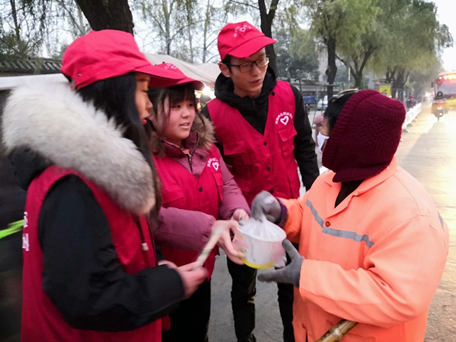 12月20日一大早,院团委和志愿者大队的同学们,带着亲手包好煮好的饺子到学院周边街道,将节日的祝福和满满的爱心送到执勤交警、环卫工人和公交司机的手中,为城市发展建设中那些“最可爱的人”送去冬日里的温暖。为了让他们一大早就能及时吃上热气腾腾的饺子,同学们昨天晚上就开始在餐厅忙活,早上天还没亮就起床煮饺子,打包、装保温盒。参与活动的志愿者激动地说:“和同学们一起包饺子过冬至,感觉特别温暖,今年冬至,给警察叔叔、环卫工人和公交司机送去自己包好的饺子,一起分享传统节日的魅力,过得格外高兴!”