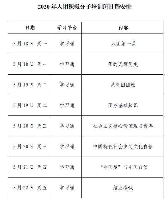 为进一步促进我院共青团工作的规范化发展,进一步严格政治标准、严格发展程序、严格调控发展数量,切实抓好团前教育,增强团组织的战斗力和凝聚力,5月18日,院团委通过学习通平台为我院2020年入团积极分子培训班学员们开展线上授课。全院共有166名入团积极分子参加此次培训。本次线上培训内容涵盖“团的光辉历史”、“团务基础知识”等多个方面,结合专题辅导、小组讨论、自学等方式,共计8个课时。学员将在线上完成考试并结业。