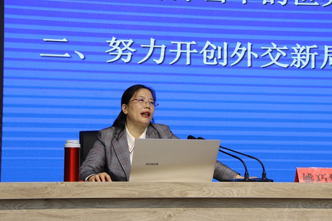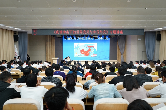 为提高全院干部师生的思想政治素质,引导广大党员干部更加自觉地用习近平新时代中国特色社会主义思想武装头脑,11 月4日下午 ,我院特邀河南省委党校教授姚巧华到我院作《疫情冲击下的世界变局与中国外交》专题报告。