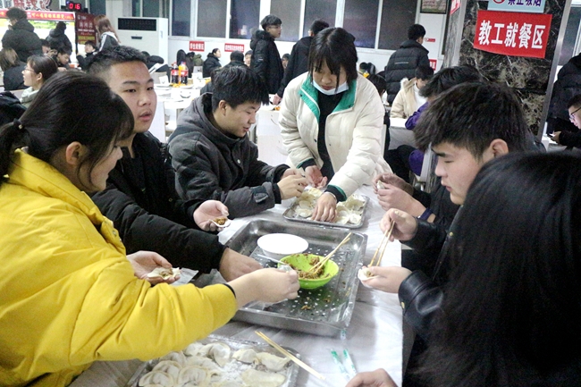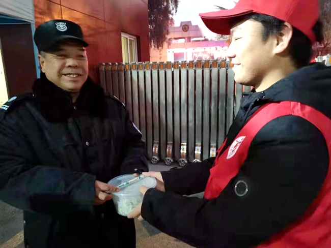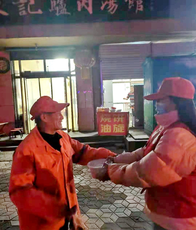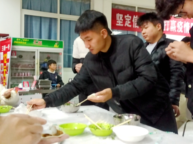 六点半,迎着晨曦的第一缕阳光,环卫工人、建筑工人和公交车司机就已经吃上了志愿者们送来的“爱心饺子”。为了让他们能及时吃上热气腾腾的饺子,志愿者们前一晚就开始在餐厅忙活,和面的和面、调馅的调馅,擀皮的擀皮,早上饺子煮熟后,同学们便迅速地把热气腾腾的饺子送到环卫工人手上,第一时间给他们送去关爱和温暖。当看到他们脸上露出的笑容,志愿者们心里也乐开了花。