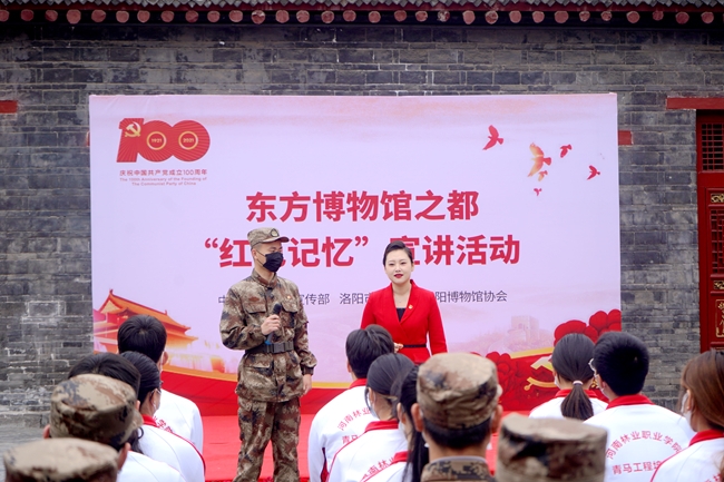 活动现场,来自洛阳市文博系统的5名讲解员围绕“学党史,讲红色故事”主题,生动讲述了5件革命文物背后的故事、民俗博物馆里的抗日救亡故事、中共洛阳组诞生的故事、洛八办里两块银元的故事以及陇海铁路大罢工的故事等等。讲解员们声情并茂的讲述,一个个红色故事将同学们带回革命战争的峥嵘岁月,引领同学们追忆红色历史,传承红色基因。