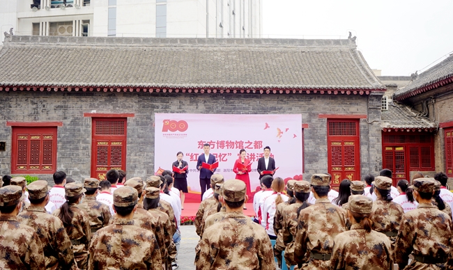 为庆祝中国共产党成立100周年,深入开展“学党史、强信念、跟党走”教育实践活动,引导广大青年厚植爱党、爱国、爱社会主义的情感,让红色基因、革命薪火代代相传,4月12日上午,院团委组织我院第二期青马班全体学员和国旗护卫队成员参加了由洛八办主办的东方博物馆之都“红色记忆”宣讲活动。