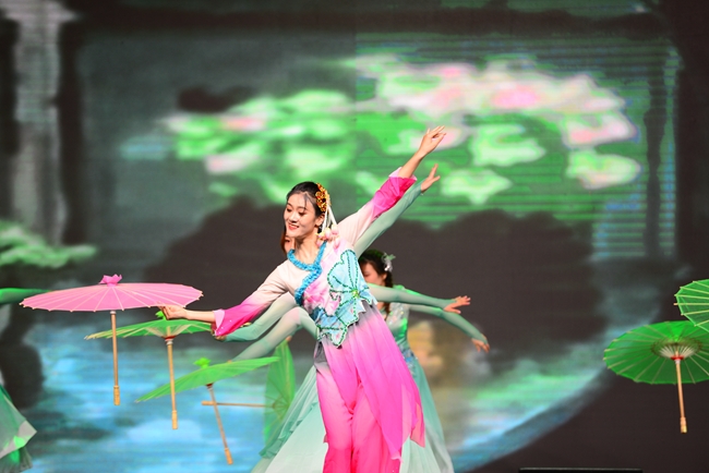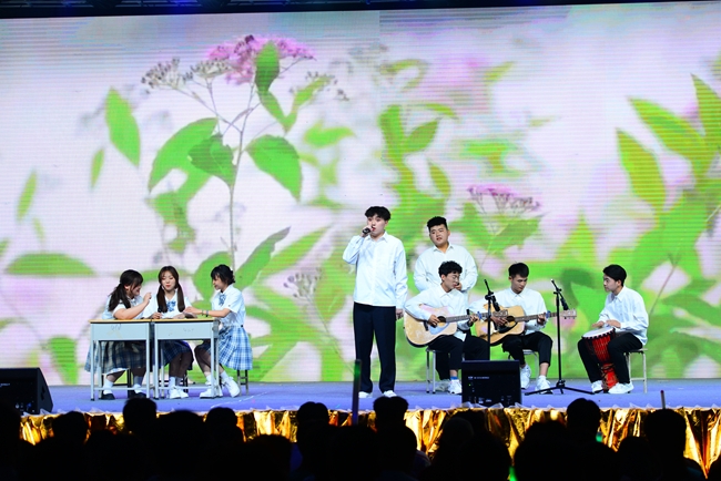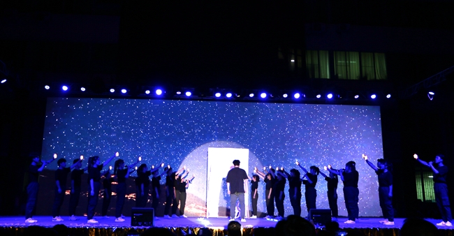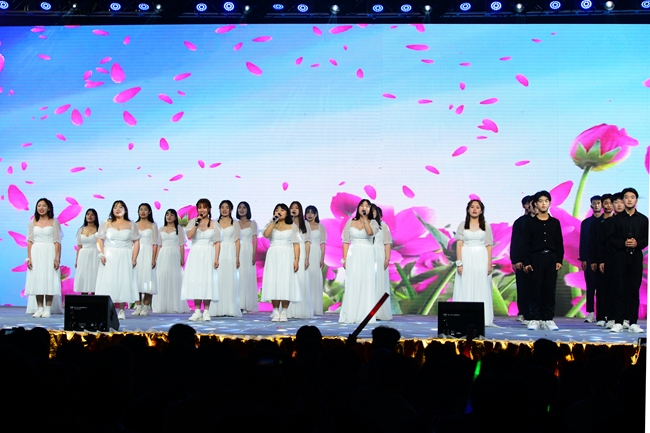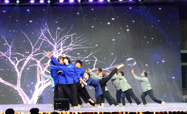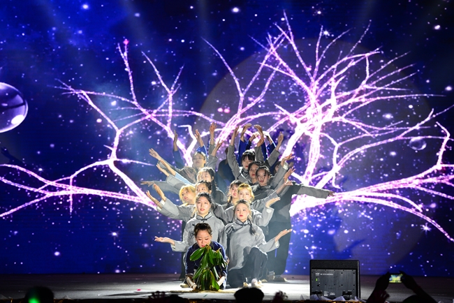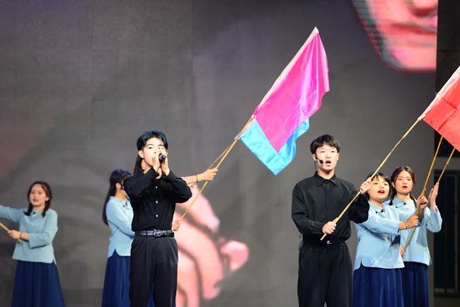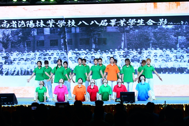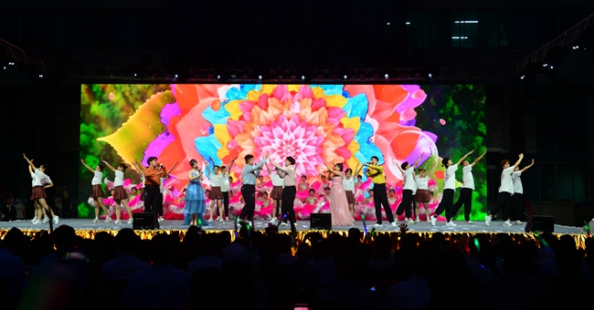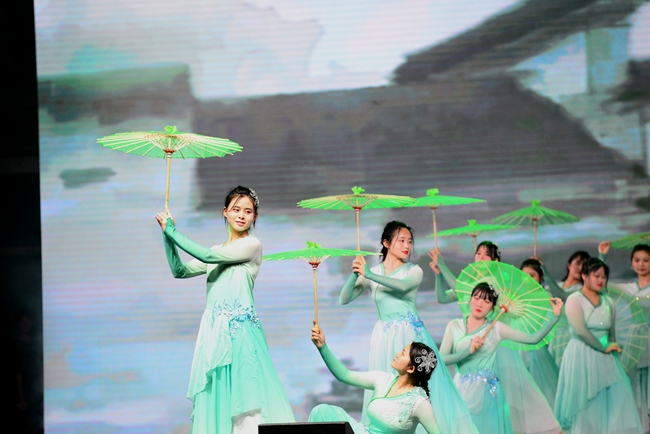 晚会共有十六个节目依次登场,唯美的画面、曼妙的舞姿、动感的节拍,一个个精彩绝伦的演出令人目不暇接,为全院师生带来了一场党史教育的沉浸式体验和一场新时代的文化盛宴。既有体现我党百年奋斗历程、礼赞革命精神的歌舞《万泉河水》《启程》《以梦为马》《盛世腾飞》《在中国大地上报道》等,有展现建国以来林业人开荒植树、将沙漠变成绿洲的塞罕坝精神的现代舞剧《青禾》,又有讴歌学院科技扶贫、助力脱贫攻坚和乡村振兴的小品《丰收的时刻》,还有孕育家国情怀、表达故乡之恋的音诗画表演《雨打芭蕉》《渔光曲》《月是故乡明》以及展现青春校园风采的健美操、武术表演等,现场掌声不断,欢呼声、喝彩声此起彼伏;由六十余名师生共同演唱的《再一次出发》作为压轴之作,将晚会再次推向了高潮,鼓励中国青年努力奔跑,做新时代的追梦人。