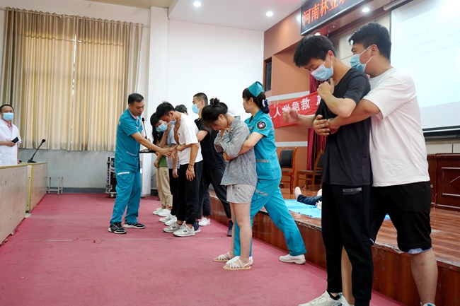 为提高我院学生自救互救意识,增强急救实践技能,5月29日上午,我院组织百余名学生干部参加了由瀍河回族区卫健委举办的“救在身边”现场救护培训活动。