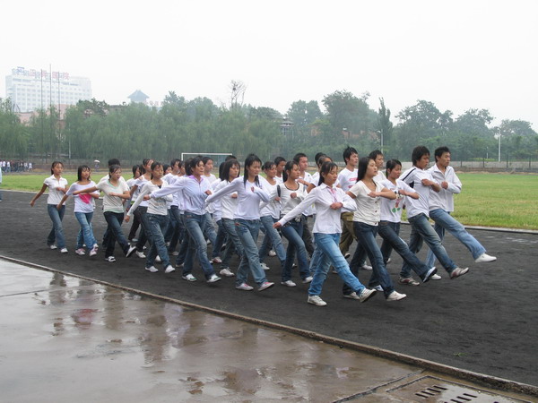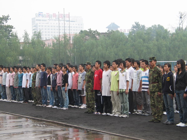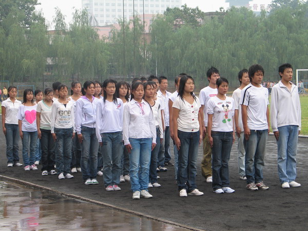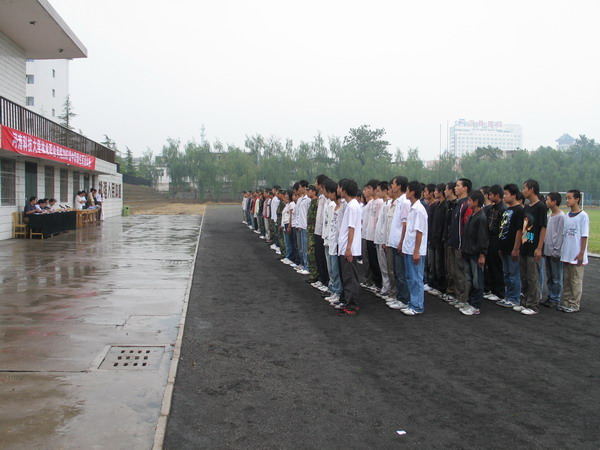 8月31日,天空中飘着蒙蒙细雨。2007级中职新生军训会操于10:30分准时在体育场开始,同学们排着整齐的方阵,喊着响亮的口号通过主席台,向学院领导汇报入校以来的军训情况。绵绵细雨淋湿了他们的衣服和头发,却淋不灭他们高昂的斗志,规范的动作、整齐的队伍、响亮的口号、饱满的热情都在诉说着他们这十多天以来的付出与收获。