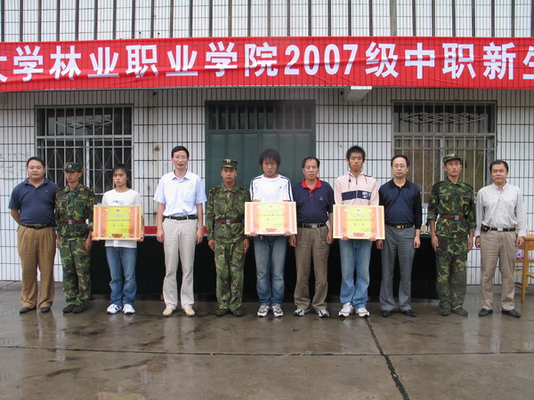 学院党委书记李当彬、副校长张松山、校长助理刘宗利、学生处长王建、团委书记刘耀玺及各系部负责人参加了会操,校长助理刘宗利在会上致辞,向参加训练的部队官兵和同学们表示衷心感谢,对军训所取得的各项成绩表示满意,并号召参训新生要认真向教官学习吃苦耐劳、艰韧不拔、顽强奋斗、无私奉献的作风,尽早转变角色,适应学校环境,成为林校大家庭中的一员。学校领导还为会操获胜班级颁发了奖牌。