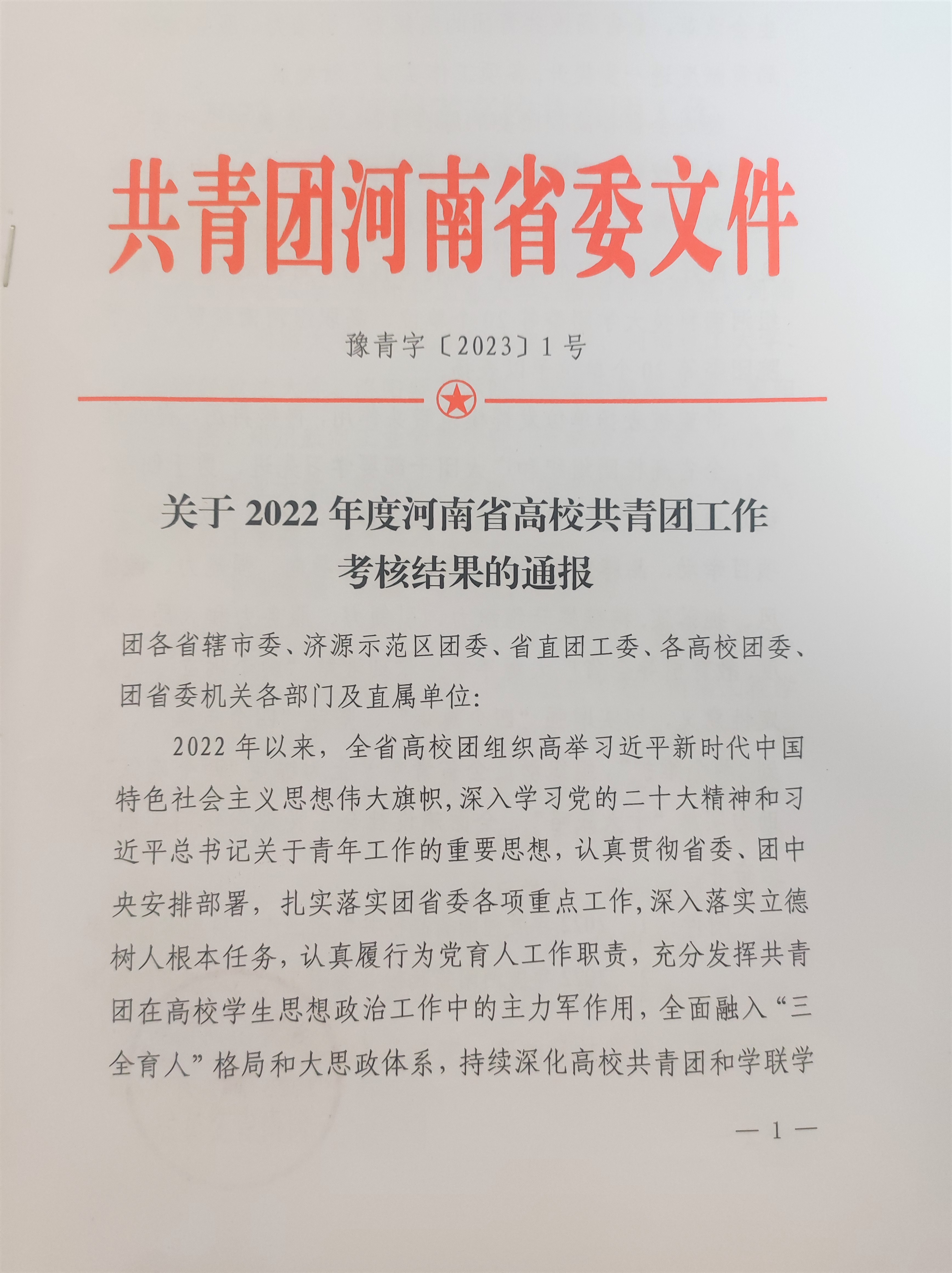 喜报!院团委在2022年度河南省高校共青团工作考核中蝉联优秀等级