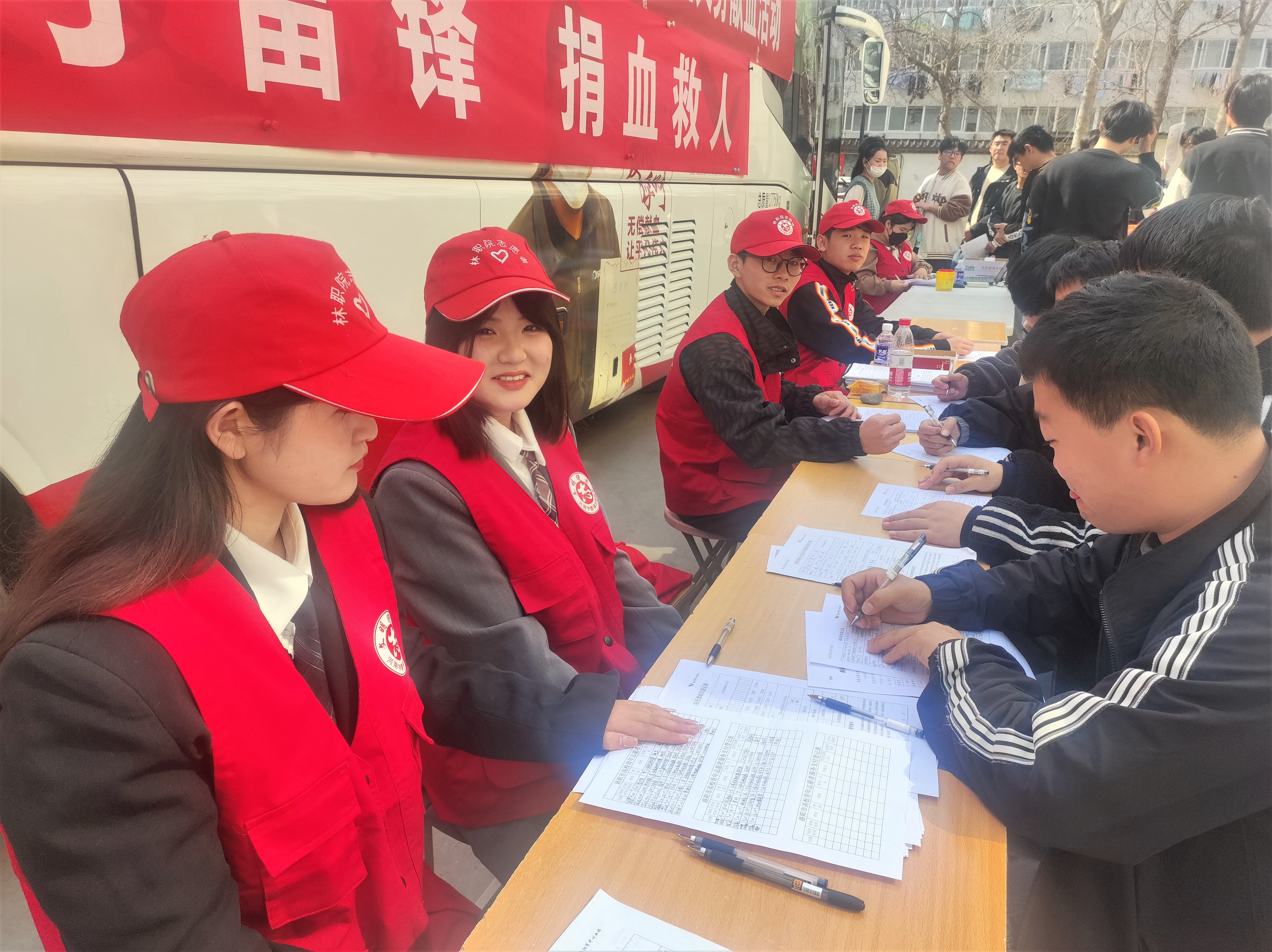 为营造安全有序的献血环境,青年志愿者们提前到达献血地点布置场地,对献血师生进行有计划、有组织的引导并开展无偿献血知识的宣传。尽管天气微凉,但师生们热情不减,很早就来到献血车前排起了长队,大家耐心等候,有序进行填表、体检、化验、验血、献血等流程。