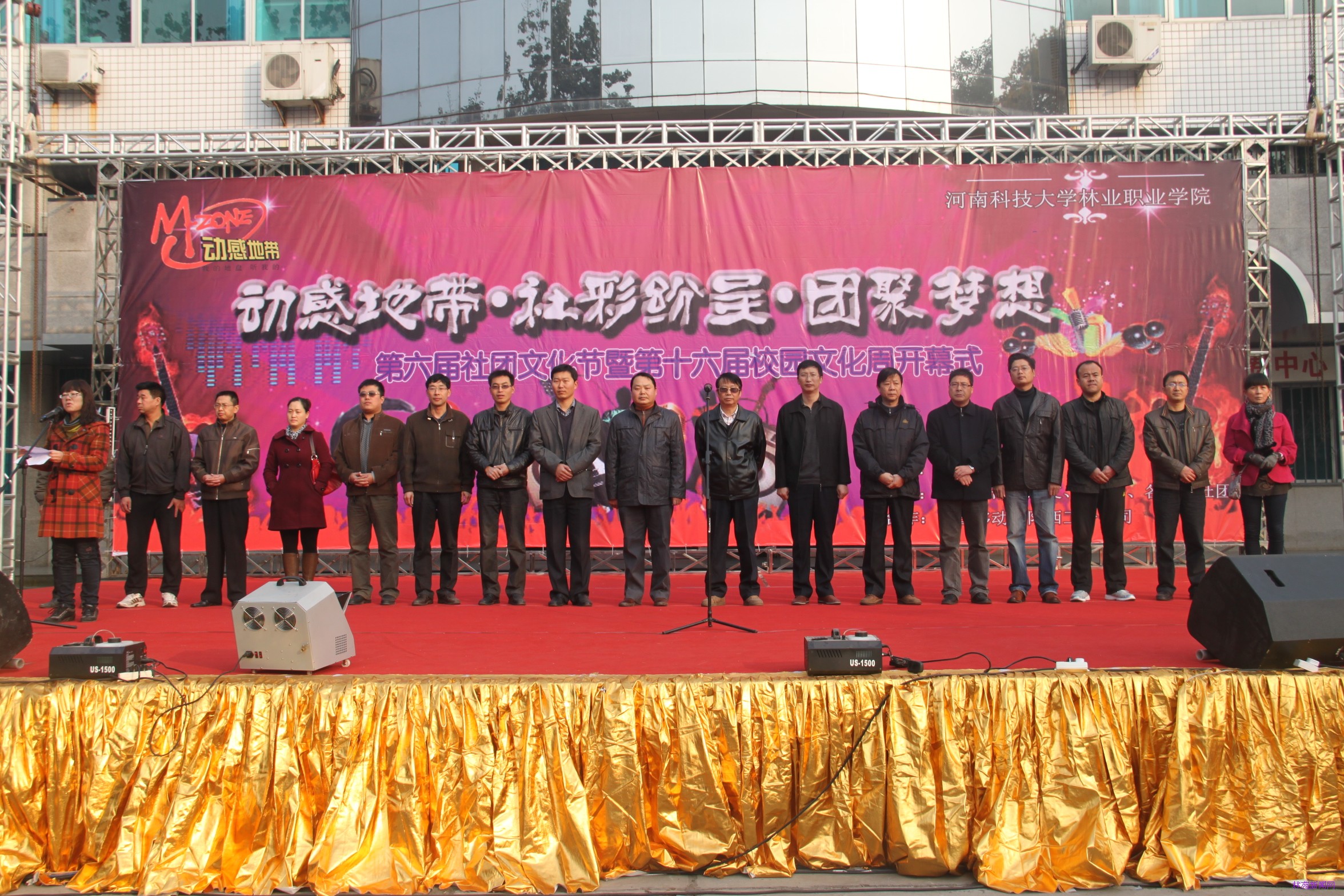 11月18日上午9点,河南科技大学林业职业学院第六届社团文化节暨第十六届校园文化周隆重拉开帷幕。学院院长吴国新、副院长刘宗利、院长助理刘耀玺、院长助理葛祖鸣、党办主任孙新智、教科研督导处处长姚方、工会主席郭志强、院办公室主任王磊、副主任李兴平、学生处处长姚海雷、伙食处处长李晓森、信工系党支部书记孟广胜、园林系副主任刘军、经贸系副主任康文涛及社团指导老师刘进社、宋建龙、辛军、杨晓红、杨铁良、张媛、方方等应邀出席了开幕式。