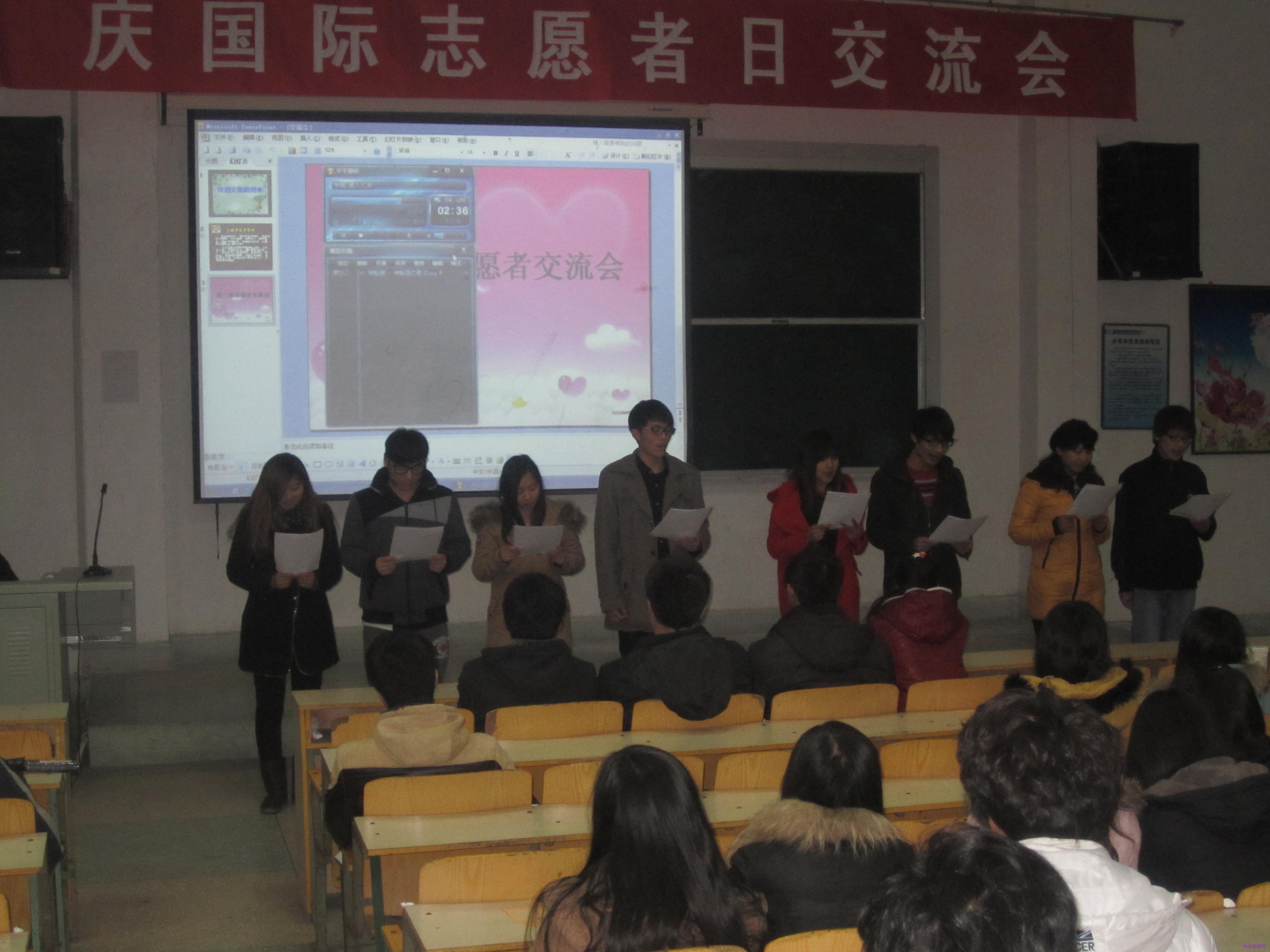团委召开“第一届志愿者交流会” 作者:张媛 来源:团委 发布时间:2012-12-07 09:21:55 浏览次数: 次 【字体:小 大】 2012年12月5日是国际志愿者日,下午5:30分,为迎接国际志愿者日的到来,我院团委组织召开河科大林职院“第一届志愿者交流会”。交流会在院东阶梯教室举办。 会议进行第一阶段,青年志愿者们进行了庄严的宣誓,表达了志愿服务他人、服务社会的决心和热情。会议进行第二阶段,青年志愿者们就自己在志愿活动中的感受和经历进行了交流,气氛融洽。 通过交流会的举办,志愿者们加深了对志愿服务的了解,更加认识到志愿服务对个人和社会的意义,交流会取得了圆满成功。 分享到: 【打印正文】