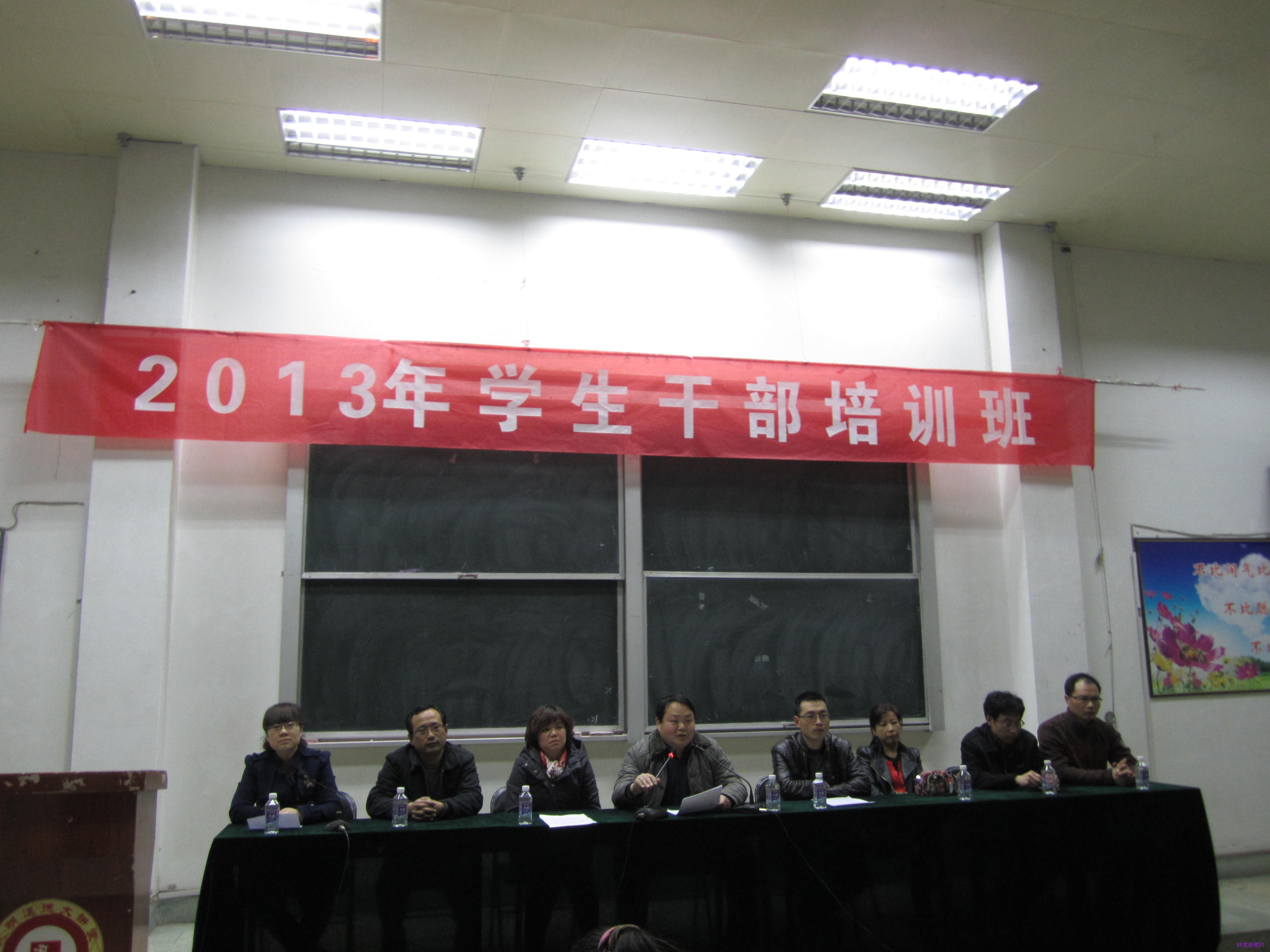 3月11日晚7:00,我院2013年学生干部培训班在西阶梯教室正式开班。院长助理刘耀玺、学生处处长姚海雷、副处长刘艳花、团委副书记马丹丹以及各系部主要领导、老师等出席了本次培训班的开班典礼。