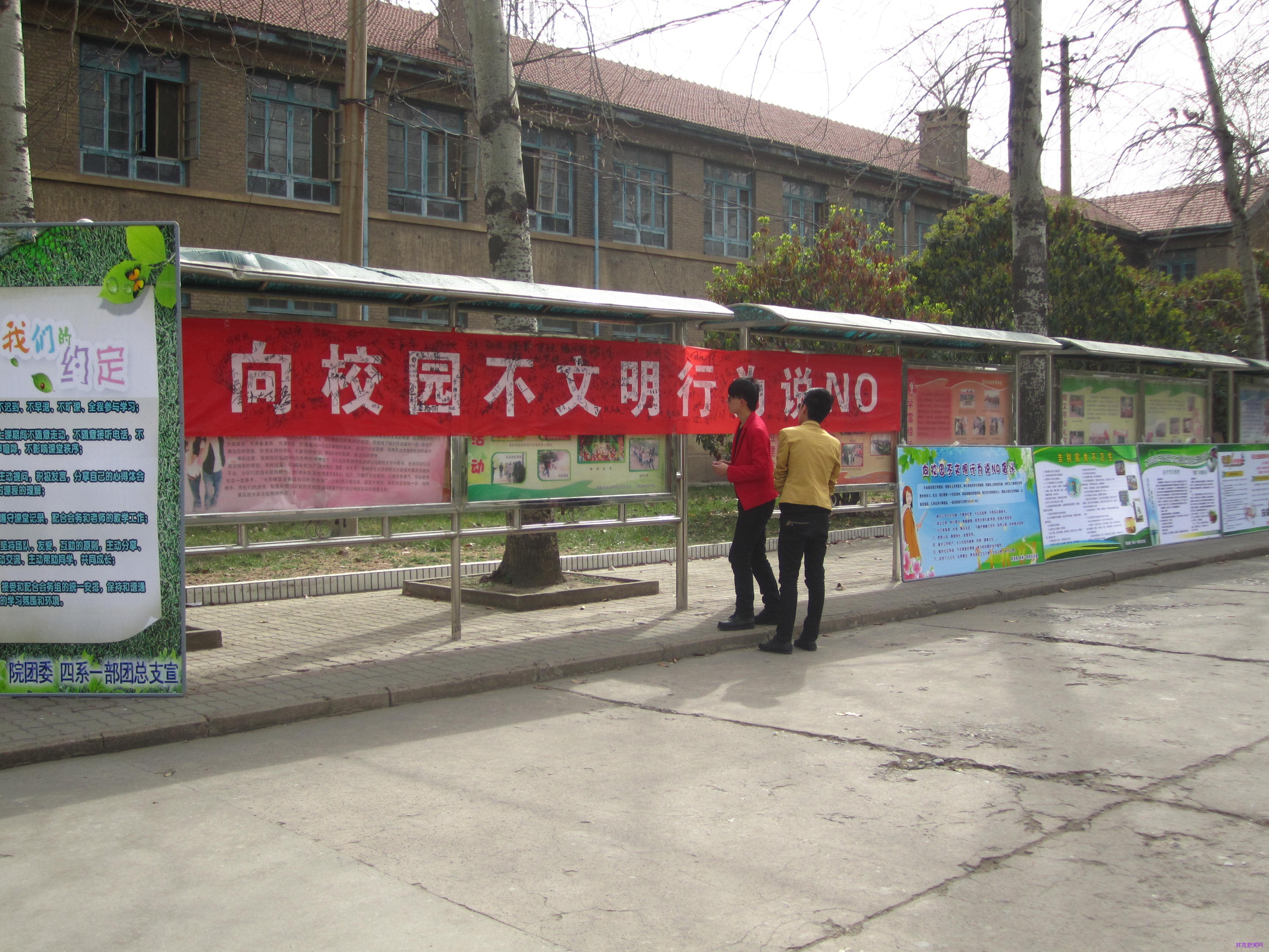 团委集中开展“告别校园不文明行为”宣传教育活动 作者:于杰民 来源:老干部处 发布时间:2013-03-18 17:54:45 浏览次数: 次 【字体:小 大】 3月18日中午,院团委联合四系一部团总支在超市门口开展了“告别校园不文明行为”宣传教育、签名活动。针对同学们之间存在的上课玩手机、迟到、旷课、宿舍卫生差、抽烟、吃饭浪费等现象做了广泛而形象的宣传。在组织者的倡议下,很多同学都在现场签名以示决心。该宣传活动将持续一周,在校园不同区域进行。团委副书记马丹丹表示:这项活动将坚持不懈的长期开展下去,使同学们逐渐改掉不良的行为习惯,做一个文明学生。 分享到: 【打印正文】
