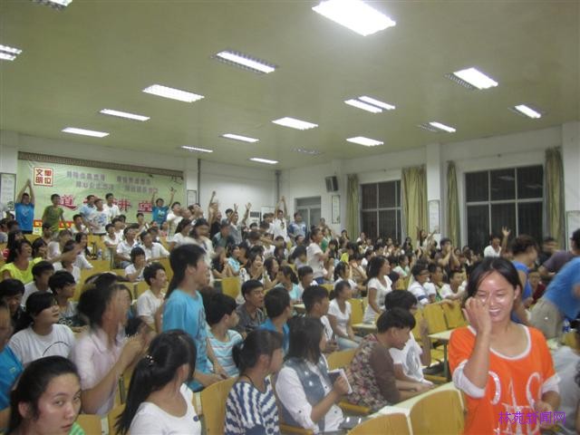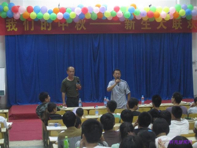 军训各中队教官、学院各系部主管学生工作老师、院团委老师等都来到晚会现场与新生们共度中秋佳节。
