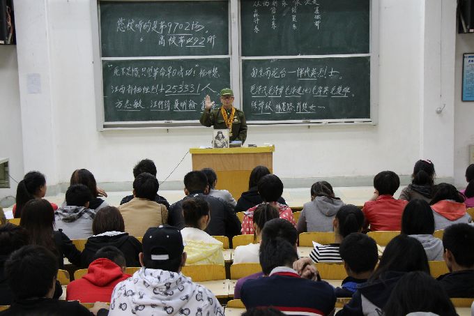 何老身着军装、胸佩军功章,用通俗易懂的语言、准确的数据、形象的图片生动地向师生们讲述了革命前辈抛头颅、洒热血的艰辛革命历程。听完报告会后,一些学生说:“我觉得我们现在的幸福生活都是革命先烈用鲜血和生命换来的,我们以后要好好学习,重新审视自己的行为,真正成为国家有用的人才。”
