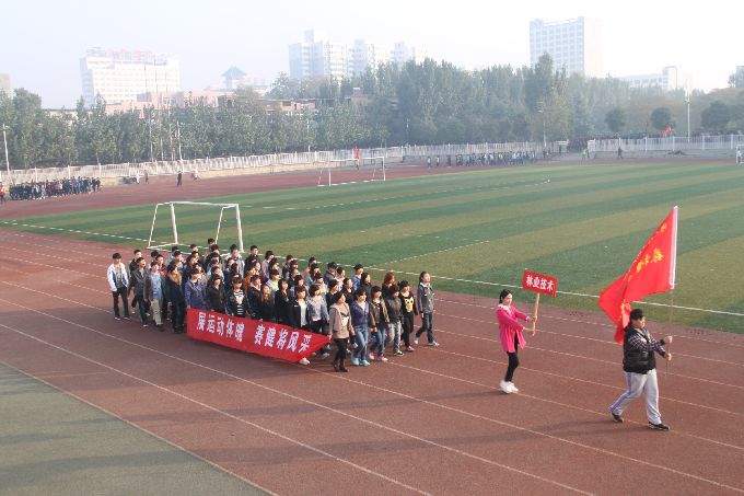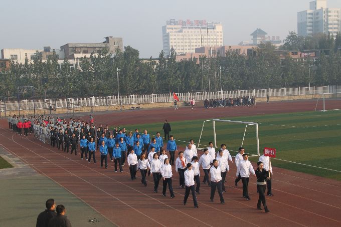 裁判员代表席瓅老师和运动员代表翟义分别上台宣誓,之后院长吴国新宣布2013年秋季运动会开幕。开幕式在我院三百余师生组成的大型广播体操表演中结束。