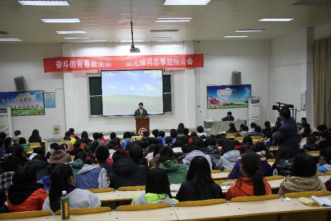 11月13日 下午,团委在西阶梯教室举办了“奋斗的青春最美丽”裴先峰同志事迹报告会,全院学生团干部二百余人参加。裴先峰典型的个人事迹、艰苦的奋斗经历,给在场的每位学生上了一堂生动的教育课。