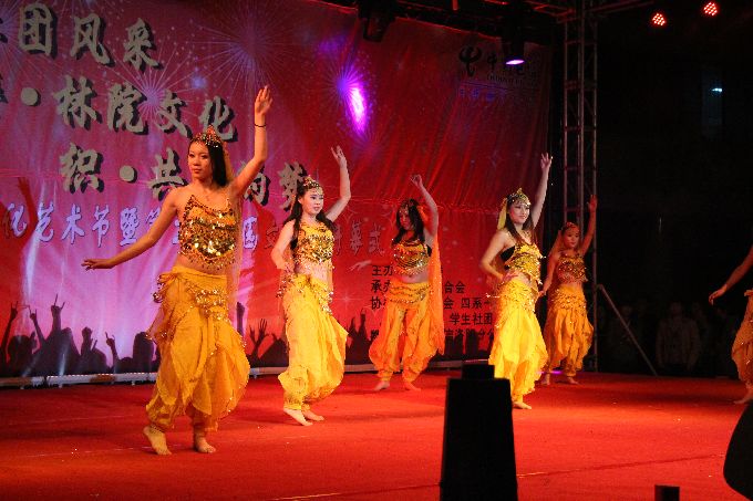 晚会在唯美的新疆舞《旋旋旋》中拉开帷幕,经贸系鲁飞老师和他的学生演绎的相声《林院之声》幽默风趣,赢得了全场的热烈掌声;男女对唱《你最珍贵》深情的歌声触动了每一位观众;小品《广播站招新》逗得现场观众不时捧腹大笑;教工子女孙伊萱、郭雯琦、沈一龙等表演的少儿舞蹈《嘻唰唰》以欢快的舞步、可爱的表演深深打动着每位观众的心,传递着快乐和幸福;院舞蹈队带来的节目更是精彩,有拉丁舞、肚皮舞表演,更有男女舞蹈串烧《美女与野兽》,赢得满场彩。晚会还新增了京剧的形式,《梨花颂》带给现场观众别样的视听感受。