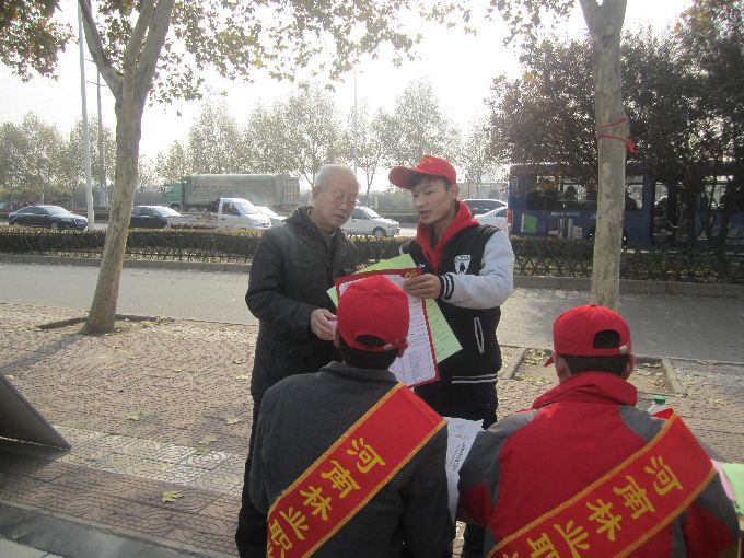 在熙春广场,志愿者们正在向过往的群众发放法律保护宣传页,并向大家讲解有关知识。