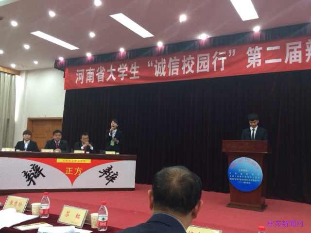 河南省大学生“诚信校园行”辩论赛由省教育厅、中国人民银行郑州中心支行、国家开发银行股份有限公司河南省分行主办,信阳师范学院总承办。旨在提高学生诚信意识,营造诚信氛围,推动全省学生资助尤其是国家助学贷款工作持续健康开展。此次C赛区复赛设在平顶山工业职业技术学院,来自华北水利水电大学、河南财经政法大学、河南警察学院、平顶山学院、河南交通职业学院等20所豫中部院校参加比赛。