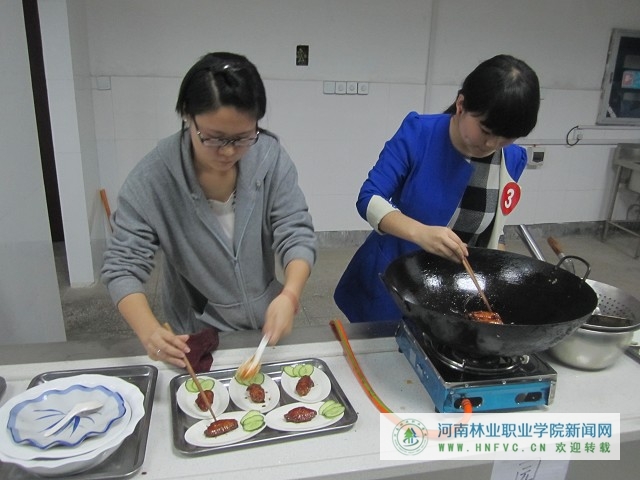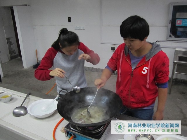 大赛在紧锣密鼓的摘菜、切菜中拉开帷幕。厨艺大比拼共分酸、甜、辣、鲜四个环节,参赛同学各显身手,不一会,各组选手亲手烹制的热腾腾的菜品就端上来了。本次大赛分三轮进行,第一轮以“酸”为主题,一盘冬瓜炖牛腩堪称一绝,此菜不仅颜色清透,而且香气逼人;色泽亮丽的糖醋鱼更是征服了在场的评委观众。第二轮以“辣”为主题,青椒鸡蛋、水煮肉更是轮番登场,让人回味无穷。第三轮以“鲜”为主题,各色菜品更是精彩纷呈,“五福临门”、红烧鱼、可乐鸡翅的新鲜出炉让在场的观众拍手叫绝,评委们赞不绝口,连在场的餐厅大厨也竖起了大拇指。