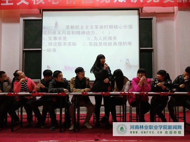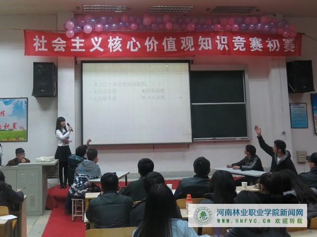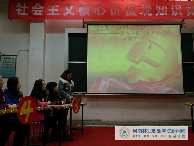 本周同时进行了“社会主义核心价值观知识竞赛初赛”,初赛由各系部分别举行。经过一个月的精心准备,同学们认真学习社会主义核心价值观体系内容,积极备赛;比赛过程中,参赛选手对知识的熟练掌握,良好的发挥,不仅使观众感受到竞赛的激烈,也使大家受益匪浅。最终,各系部优中选优,各选派五名代表参加于下周进行的“社会主义核心价值观知识竞赛复赛”。期待选手们过关斩将,代表系部进入最终的决赛。