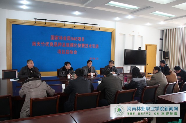 2014年12月3日上午,我院主持的国家林业局948项目“南天竹优良品种及规模化快繁技术引进”项目在三会议室召开启动会议。省林业厅科技处副处长杨文立出席,学院院长吴国新、国家林业局泡桐研究开发中心高级工程师李相宽、学院纪委、财务处、科研处负责同志及课题组全体成员参加了会议。