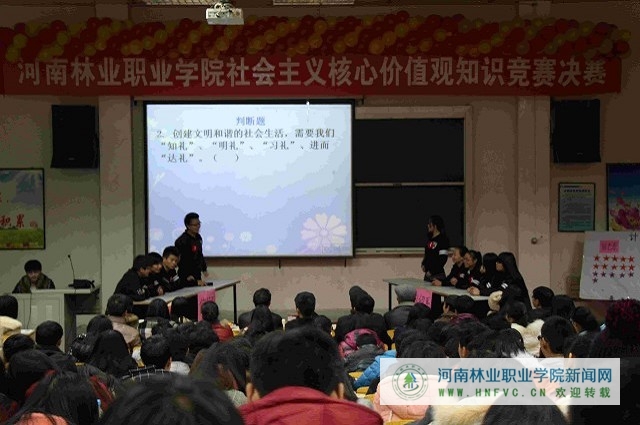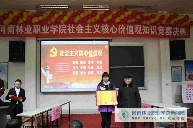 “社会主义核心价值观”知识竞赛的举办更是将整个活动推向高潮。11月份以来,经过各系部初赛、学院复赛、决赛三个阶段,共进行了八场“社会主义核心价值观”知识竞赛。各系部精心组织、积极参与,比赛进行的如火如荼。学院退休老干部也倾心关注此次比赛,决赛现场,张天合、李如瑄、刘德芳、单之星和李建娥等退休老干部到场参加指导,并为获奖团队颁奖。老干部们的关心与参与给了同学们极大的鼓舞,同时也对同学们努力学习、积极践行社会主义核心价值观的行动表示欣慰和肯定。