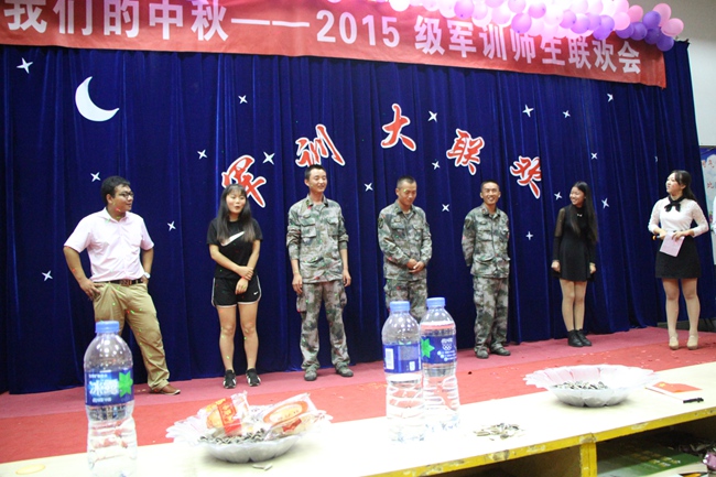 一年一度的中秋佳节即将到来,为了给正在紧张有序进行军训工作的教官和同学们送去诚挚的祝福,让远离家乡的新生们度过一个愉快祥和的中秋节,由院团委、院学生会、学生社团联合会精心策划组织的军训师生中秋联欢会于9月26日晚正式拉开帷幕。学生处、团委、2015级辅导员、班主任、全体教官参加,他们和1400余名新生一起欢聚一堂,共度中秋佳节。