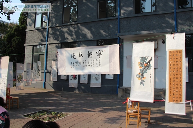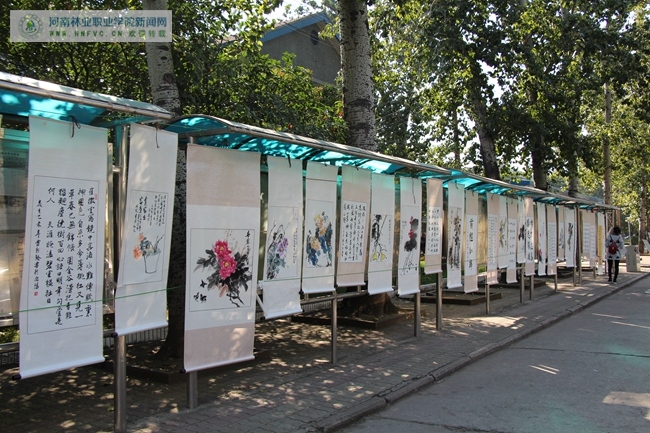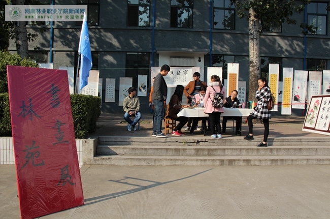 11月1日-2日,阳光明媚,百花争艳,林苑书画社在院广场举办学生书画作品展。展出的作品均出自书画社学生社员之手,绘画作品主要为国画牡丹、梅花图,书法作品有硬笔、软笔的隶书、楷书、小篆等,吸引了众多师生驻足观看。