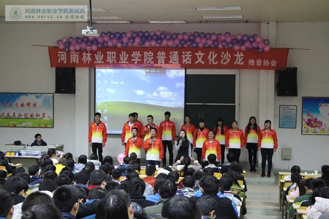 本次沙龙的主题是“推广普通话,说好普通话”。本次活动由社团成员一曲热情洋溢的《不浪漫罪名》拉开帷幕。紧随其后有《孝心无价》、《青春》等小演讲,期间更有精彩的脱口秀表演《今晚90后》,将本次活动推向了高潮。活动在《致橡树》、《少年中国说》等朗诵表演中结束。