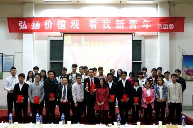 2016年4月20日晚,由院团委举办的“弘扬价值观 看我新青年”践行社会主义核心价值观主题演讲比赛总决赛在西阶梯隆重举行。学生处副处长包帅、园林系党支部书记叶召权、信艺系党支部书记刘艳花、经贸系党支部书记李继东、车电系党支部书记安存胜、院团委副书记王杰、院团委王铭阳以及车电系学管专干张宁莅临现场担任评委。比赛历经三轮:我说价值观、辩我新青年、终极演说,最终白昊鸢同学荣获冠军,马兰臻和刘一帆同学分别摘得亚军和季军。三轮比赛中选手们都表现出色,场上掌声此起彼伏,通过此次比赛,社会主义核心价值观24字方针,将会在生活中得到更好的践行!