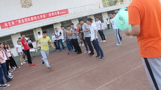 信艺系举办“黄金团队默契大考验”活动 作者:王杰 来源:团委 发布时间:2016-05-20 17:43:42 浏览次数: 次 【字体:小 大】 5月17日下午信艺系在院操场举行“黄金团队默契大考验”活动,信艺系党支部书记刘艳花出席观看,本次活动共有“团队踢毽子”,“夹运乒乓球”,“盲人击鼓”,“协作吹气球”等九个环节。共有四支队伍参加。每个环节,参赛的同学们都拿出了看家本事,最终“男神队”拿到了本次比赛的冠军。 分享到: 【打印正文】