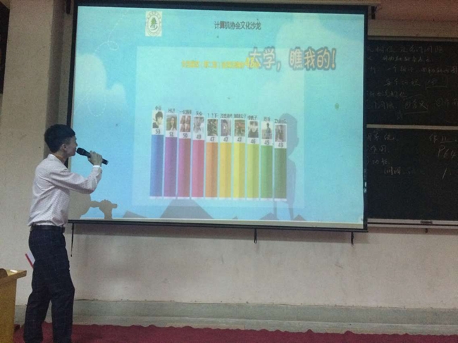 “承载梦想,开启未来”社团文化沙龙成功举办 作者:王杰 来源:团委 发布时间:2016-05-25 19:06:50 浏览次数: 次 【字体:小 大】 5月24日晚7点30分计算机协会在东阶梯举办“承载梦想 开启未来”社团文化沙龙。晚会在舞蹈《Jump up》中开场,幻灯片《网络是把双刃剑》阐明了计算机和网络的利弊。结合了微信墙的游戏《对对碰》成为了晚会的最大亮点。本次沙龙准备充分,吸引了众多学生参,使同学们在游戏中增强了正确使用网络和计算机的意识。 分享到: 【打印正文】
