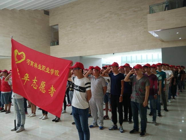 9月14日上午,洛阳市2016年河洛文化旅游节志愿服务誓师大会在新区博物馆举行。我院140名学生志愿者参加了此次大会。早上8:00迎着初升的太阳,一支队列整齐、富有朝气的“小红帽”队伍在团委和信艺系部分老师的带领下浩浩荡荡的出发,他们高举“河南林业职业学院青年志愿者”的大旗,满怀希望和信心,奔向会场,以自己的嘹亮的口号和良好的精神面貌宣誓着我院青年学生志愿服务河洛文化旅游节的信念和决心。