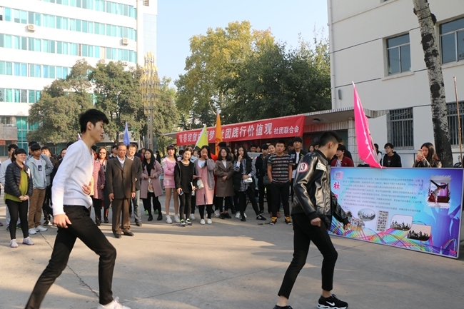 宋宏伟院长在开幕式中致辞,他指出:学生社团是高校第二课堂的重要组成部分,是大学生开发潜能、展示自我的舞台,也是学院推进大学生素质拓展计划的一个重要载体,在学生综合素质的培养、校园文化氛围的营造、学院独特文化的传承等方面发挥着重要的作用;参与社团活动,有利于丰富校园生活,有利于增加同学、师生间的团结,有利于培育和提升学生的综合素质;近年来,我院学生社团保持了良好的发展态势,社团队伍不断壮大,活动内容由以兴趣型为主,向兴趣型和技能实践型并重转变,活动范围由校园型为主,向校园型和社会型兼顾扩展,丰富多彩的社团活动已经成为校园一道亮丽的风景线。之后,宋院长宣布本届社团文化节暨校园文化月开幕。