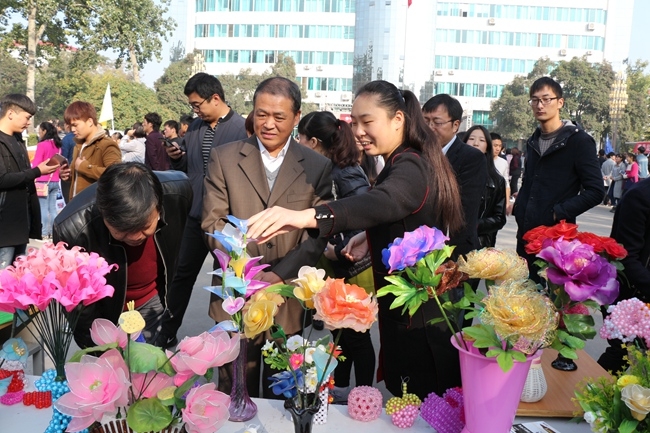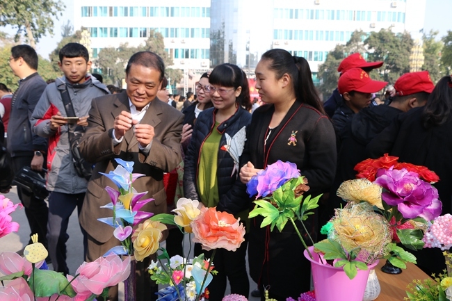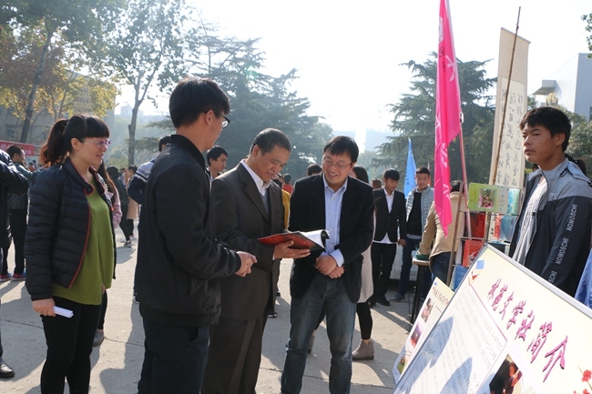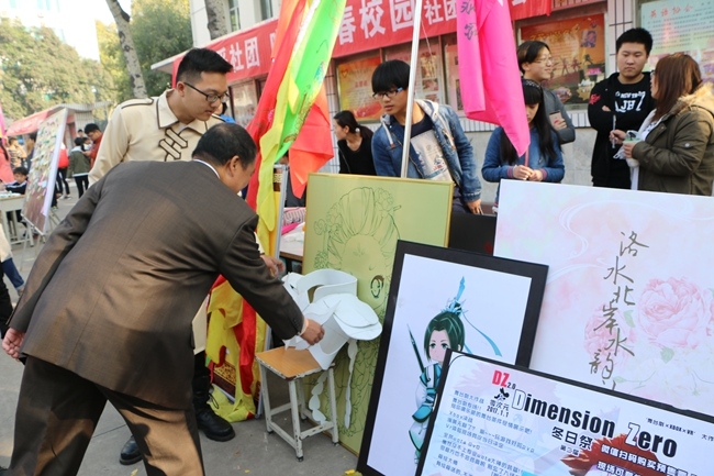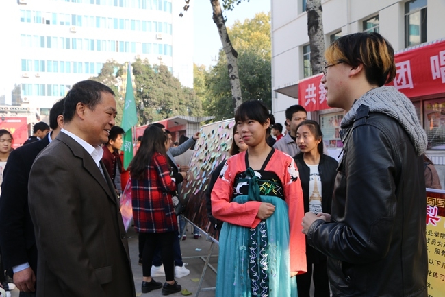 开幕式结束后,学院领导和老师们兴致勃勃地观看了各社团的成果展,包括盆花作品展示、学生书画作品展、手工丝网花及串珠作品展、舞蹈表演、乐器演奏、动漫表演、花样篮球表演、滑板表演等,还参与了各协会举办的成语竞猜、心愿寄语、签名活动等。宋院长现场详细听取了各社团的工作汇报和展示,对各社团的日常活动、特色和育人方面的作用大加赞扬,同时勉励同学们要继续保持参与社团活动的激情与活力,努力把社团活动成果和特色发扬光大,要走出校门,与外校的社团多交流,多学习,提升品质,扩大影响。