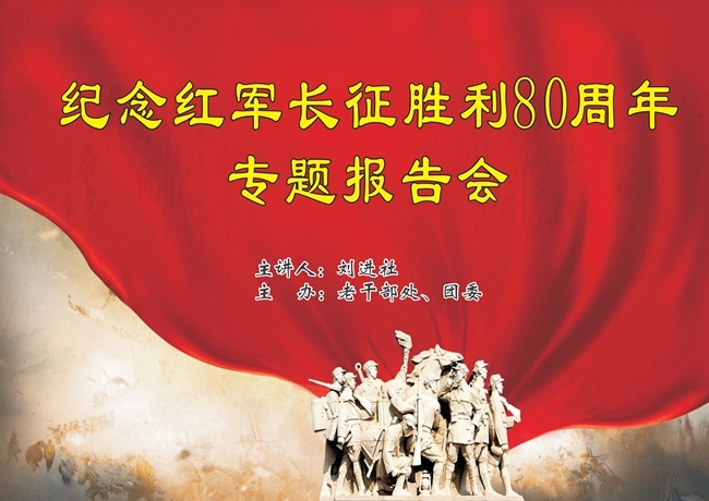 11月10日晚,由我院老干部处、团委组织举办的纪念红军长征胜利80周年专题报告会在西阶梯教室举行。学院副院长刘耀玺出席,党办、老干部处、团委、信艺系及基础部的有关负责同志和全院三百余名学生干部一起聆听了报告。