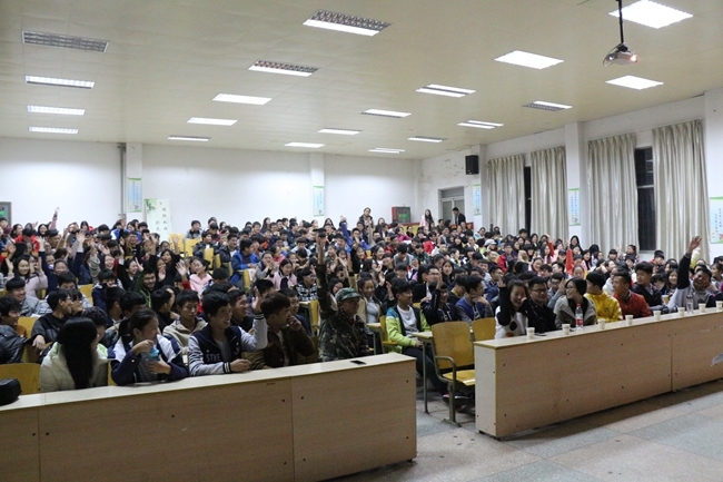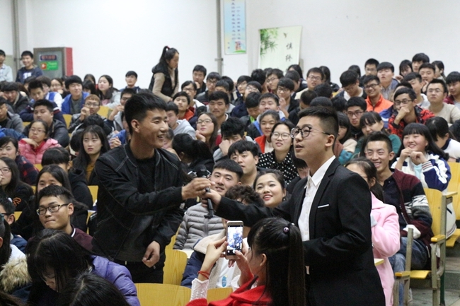11月14日晚,英语协会、推普协会在东阶梯举办“林苑国语英语诗歌朗诵”社团文化沙龙。院团委副书记王杰、基础部副主任万卉敏、院团委袁光涛老师、车电系专职教师王龙龙出席并观看了本次活动。出席本次活动的还有社联和其他社团的负责人。各种节目和游戏贯穿整场活动,内容精彩纷呈,同学们欢笑不断。绕口令和英语单词拼接互动游戏将本场晚会推向了高潮。