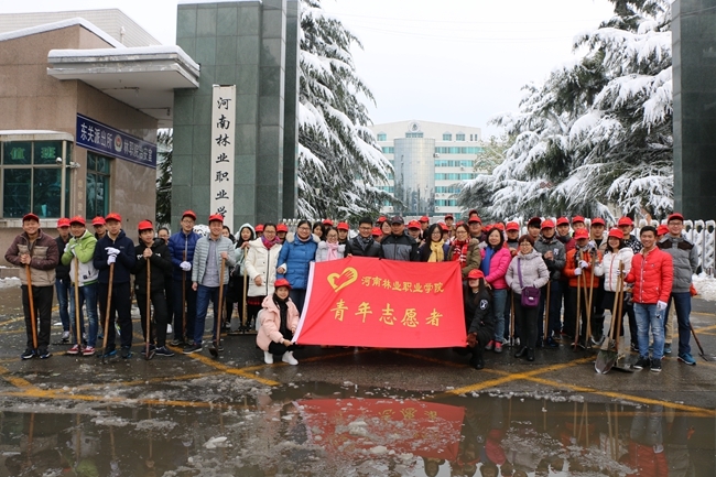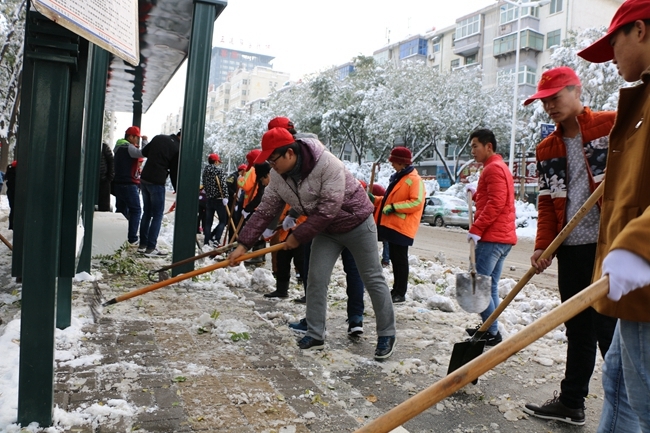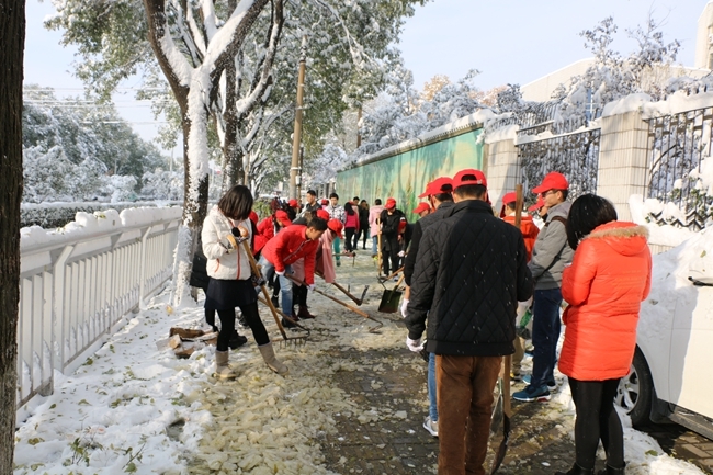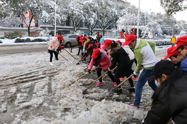 清扫校内外积雪 志愿者在行动