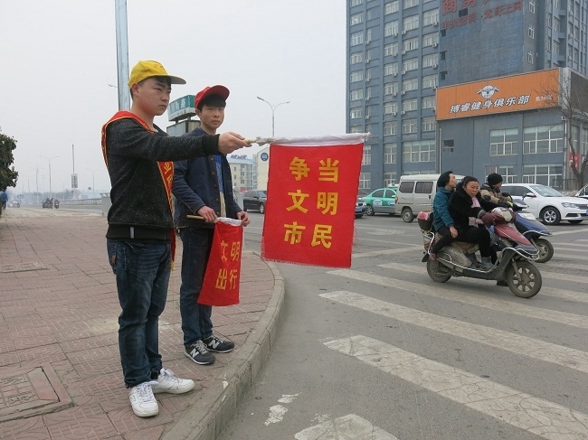 3月11日上午,生态系团总支组织志愿者在启明南路中州路口参加文明交通助岗活动,协助交警同志指挥行人和车辆禁止随意闯红灯,减免交通事故的发生。